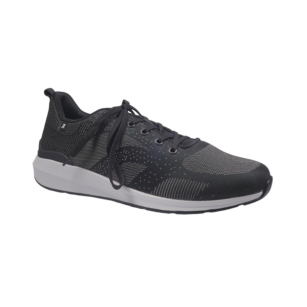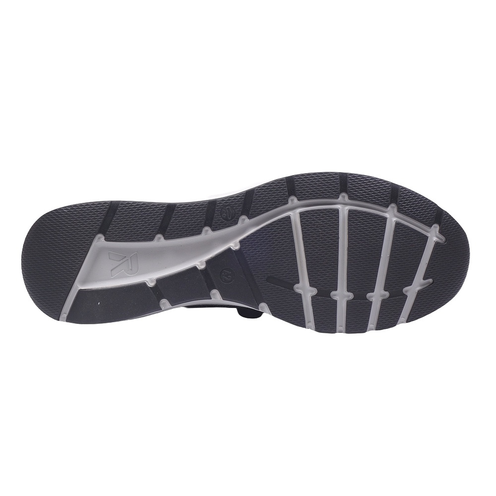 Dámská vycházková obuv značky Rieker. Svršek, podšívka a stélka jsou textilní, podešev syntetická. Stélka je vyjmutelná a vyměkčená (EVOLUTION SOFT). Barva je černo-stříbrná (schwarz). Svršek obuvi je vybaven vodoodpuzující nanotechnologií (WALK DRY). Obuv je vhodná na nošení do města a v upraveném přírodním prostředí (parky, lesní a polní cesty apod.).