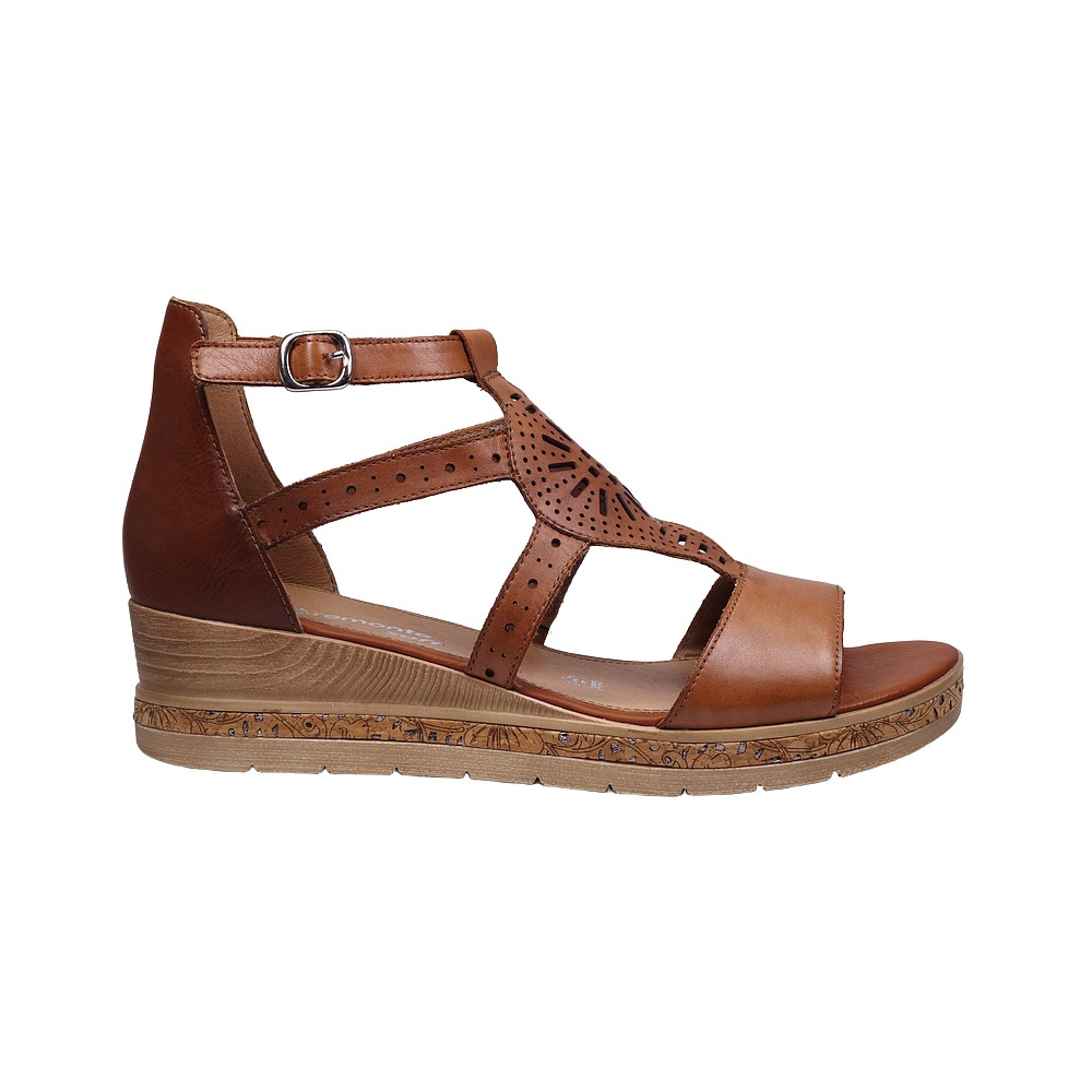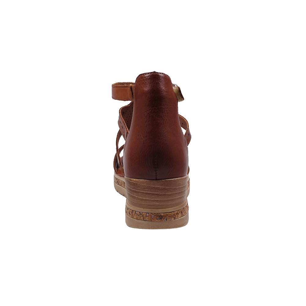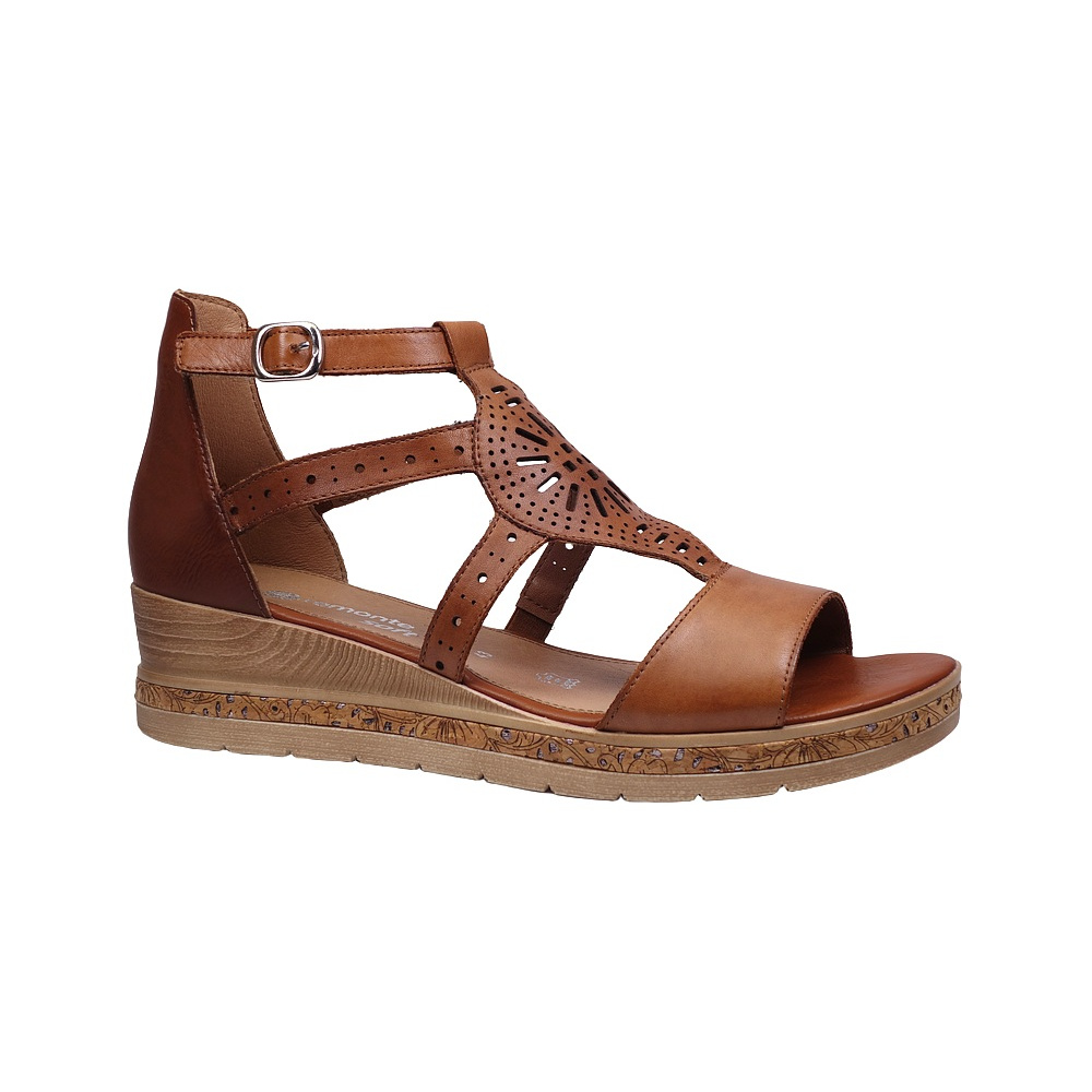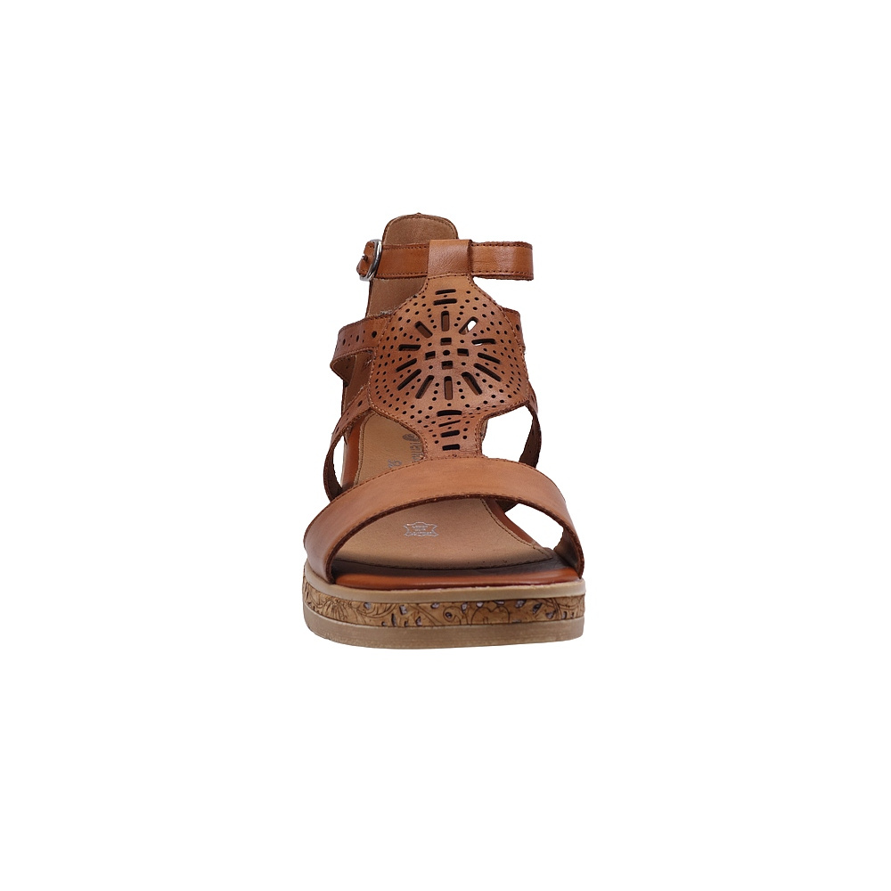 Dámské letní vycházkové polosandály značky Remonte. Svršek je z hladké kůže, podšívka kombinací kůže a syntetiky, stélka kožená (stélka je vyměkčená pro větší komfort), podešev syntetická. Barva je přírodní (braun). Pásky přes nárt jsou upevněny na gumičkách pro větší komfort a pásek u kotníku je navíc opatřen suchým zipem pro rychlejší obutí (spona je pouze na ozdobu). Obuv je vhodná na nošení do města a v upraveném přírodním prostředí (parky, lesní a polní cesty apod.).