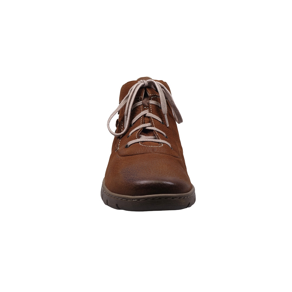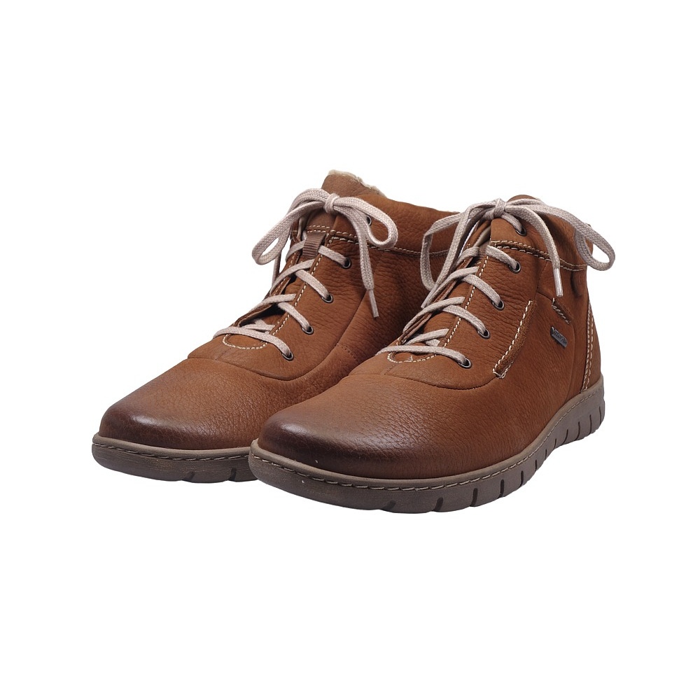 Dámská zimní kotníková vycházková obuv značky Josef Seibel. Svršek je z broušené kůže (nubuk), podšívka kombinací kůže a textilu (umělý kožíšek), stélka textilní (fleece), podešev syntetická. Stélka je vyjmutelná a vyměkčená (stélka je vybavena malým srdíčkem na podporu příčné klenby). Barva je přírodní (cognac-kombi). Obuv je vybavena membránou TOPDRY-TEX. Obuv je vhodná na nošení do města a v upraveném přírodním prostředí (parky, lesní a polní cesty apod.).