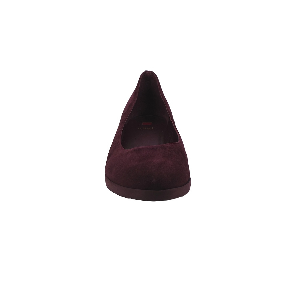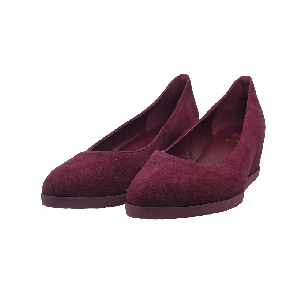 Dámské vycházkové lodičky na klínku značky Högl. Svršek je z broušené kůže (velur, včetně potahovaného klínku), podšívka a stélka kožená, podešev syntetická. Barva je vínová. Výška klínku je 40 mm. Obuv je vhodná na nošení do města i do společnosti.