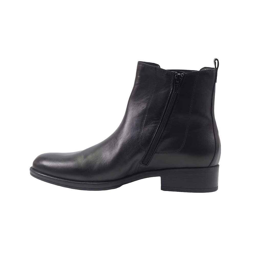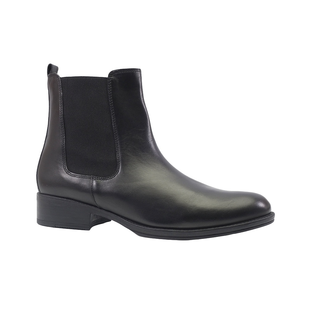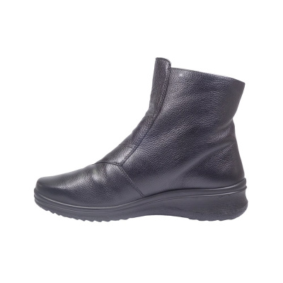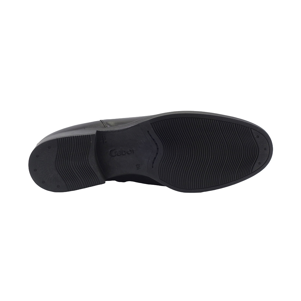 Dámská zimní kotníková vycházková obuv značky Gabor. Svršek je z hladké kůže, podšívka a stélka textilní (micro fleece), podešev syntetická. Stélka je vyjmutelná. Barva je černá (schwarz). Výška podpatku je 30 mm. Pro snažší obutí a větší komfort je z jedné strany velká gumička (tzv. perko) a na druhé straně je zip. Obuv je vhodná na nošení do města a v upraveném přírodním prostředí (parky, lesní a polní cesty apod.).