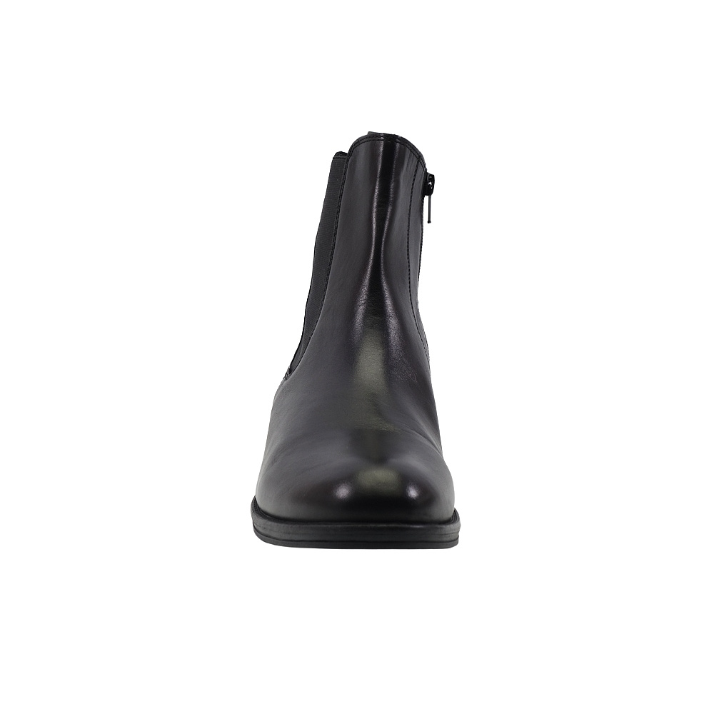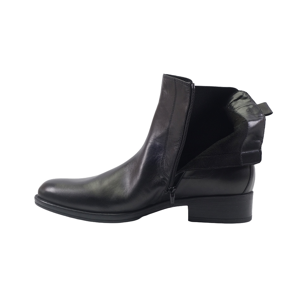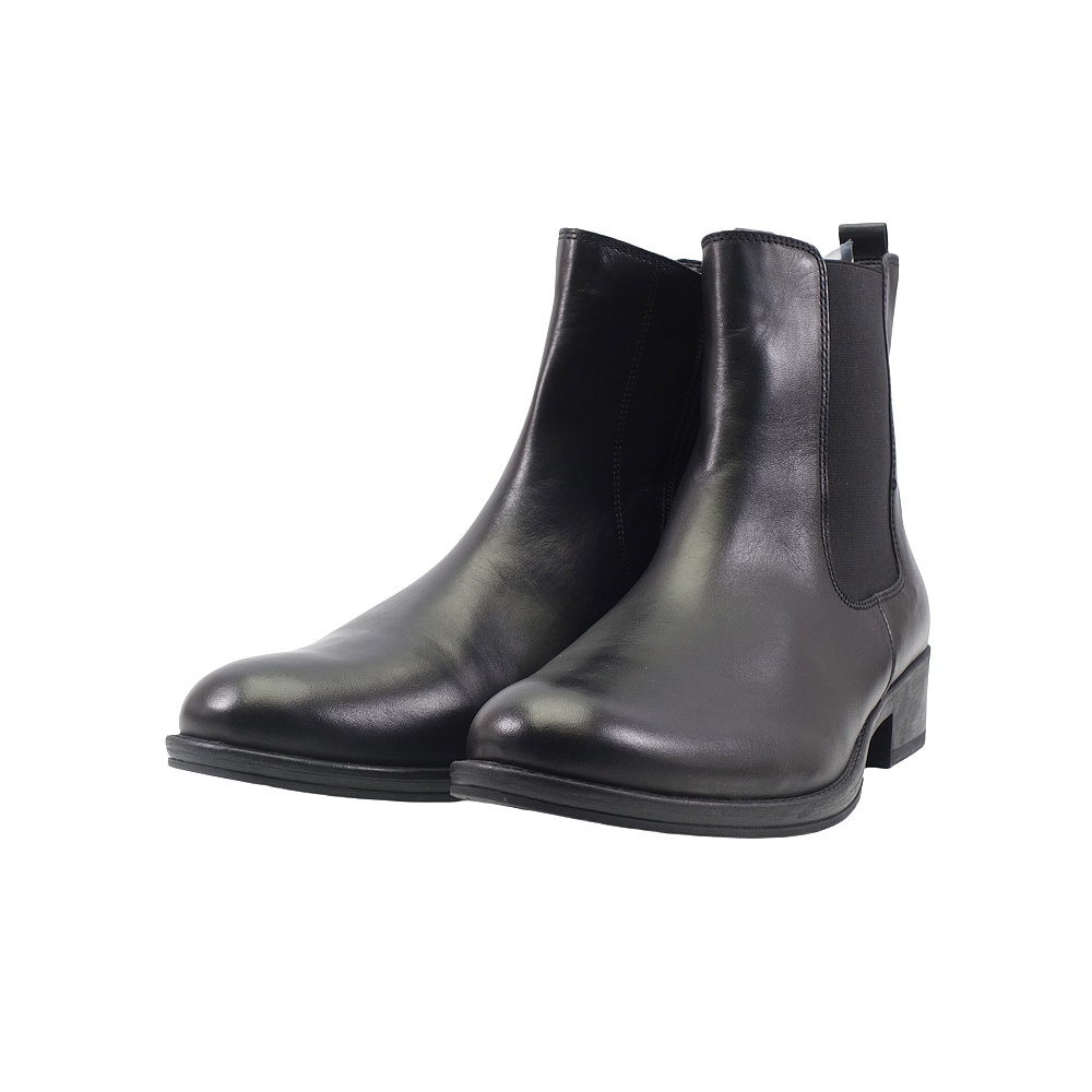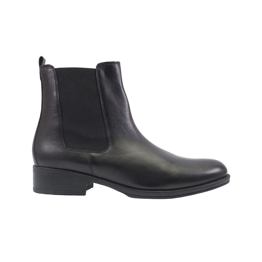 Dámská zimní kotníková vycházková obuv značky Gabor. Svršek je z hladké kůže, podšívka a stélka textilní (micro fleece), podešev syntetická. Stélka je vyjmutelná. Barva je černá (schwarz). Výška podpatku je 30 mm. Pro snažší obutí a větší komfort je z jedné strany velká gumička (tzv. perko) a na druhé straně je zip. Obuv je vhodná na nošení do města a v upraveném přírodním prostředí (parky, lesní a polní cesty apod.).