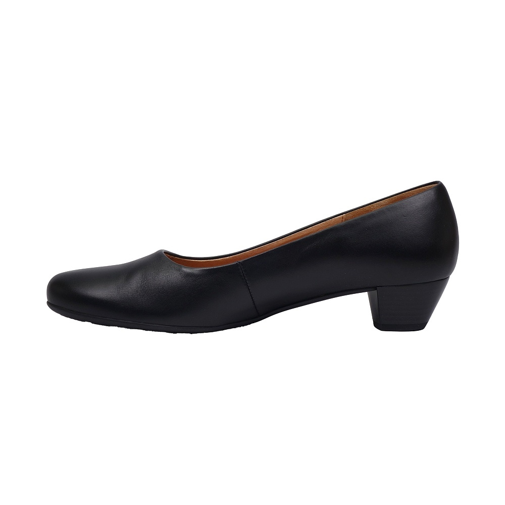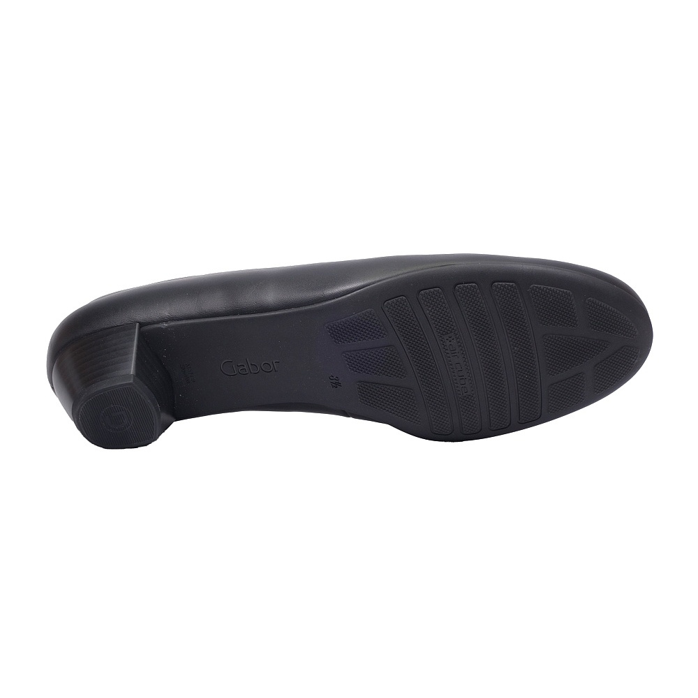 Dámské vycházkové lodičky značky Gabor. Svršek je z hladké kůže, podšívka a stélka kožená, podešev syntetická (AIR CUBE). Barva je černá (schwarz). Šíře je G. Výška podpatku je 35 mm. Obuv je vhodná na nošení do města i do společnosti.