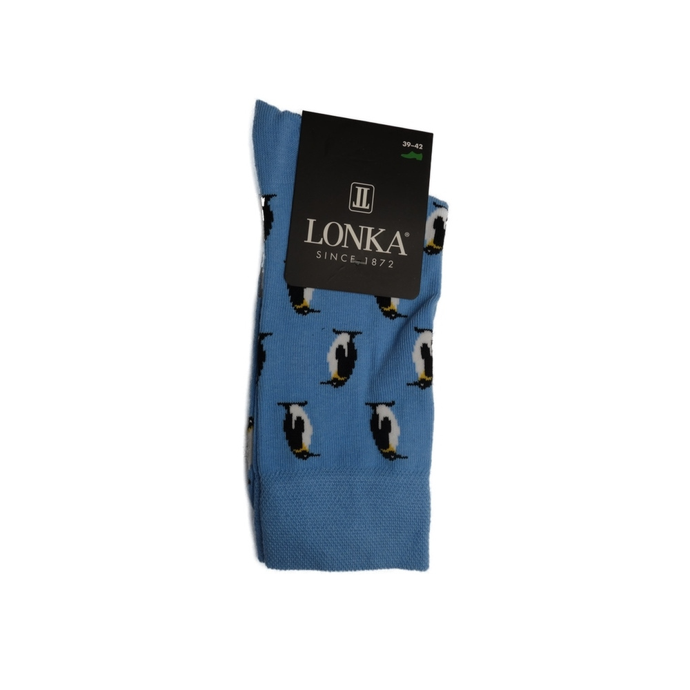Módní obrázkové ponožky Lonka Woodoo 10/tučňáci jsou bavlněné ponožky s elastanem příjemné na dotyk. Bavlna dobře pohlcuje vlhkost a díky elastanu a polyamidu ponožky déle vydrží, dobře se přizpůsobí noze a drží tvar. Špice je uzavřena řetízkováním, takže nikde netlačí stejně jako jemný a nestahující pique lem. Tyto ponožky mají klasickou výšku a jsou vhodné pro každodenní nošení.