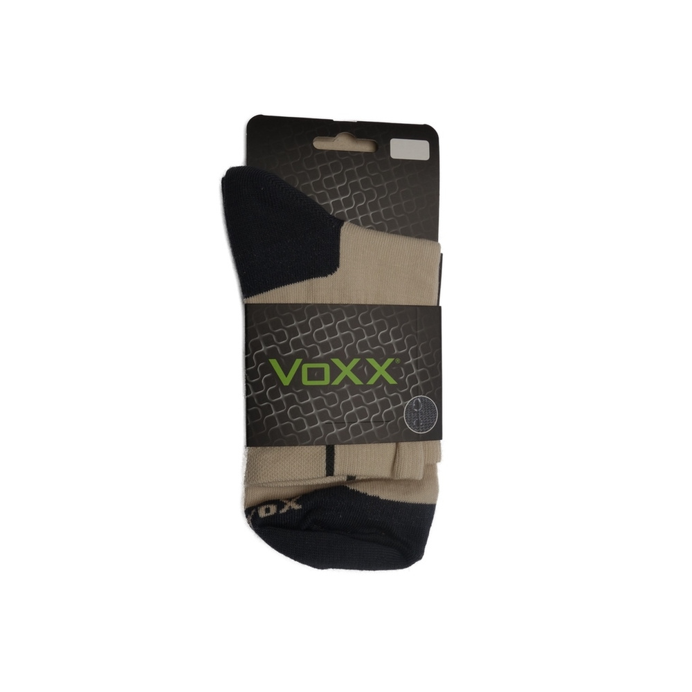 Sportovní ponožky VoXX Josef béžová, jsou tenké ponožky s ionty stříbra. Ponožky jsou béžové s černou špicí a patou a hnědým nápisem na chodidle. Ponožky obsahují speciálně vypředené polypropylenové vlákno SilproX s obsahem iontů stříbra, které působí antibakteriálně a značně omezuje tvorbu bakterií a plísní. Bakterie jsou stříbrem přirozeně zničeny a nedochází pak k tvorbě zápachu. Ponožky mají volný neškrtící lem a vysoký podíl bavlny pro dobrý odvod potu. Elastická bandáž na nártu, zabraňuje přetočení ponožek v obuvi. Jsou vhodné pro celodenní nošení i pro sportovní vyžití.