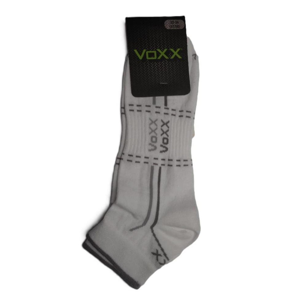 Nízké sportovní ponožky VoXX Rex 11 bílá, jsou slabé kotníkové ponožky na celodenní nošení i letní indoorové a outdoorové aktivity. Ponožky jsou bílé s šedými detaily a nápisy. Tyto sportovní ponožky mají vyšší podíl bavlny pro dobrý odvod vlhkosti, prodyšnou zónu na nártu, elastickou zónu proti přetočení ponožky, jemný nestahující lem a řetízkovanou špici. Výška ponožek pod kotník je ideální na léto.