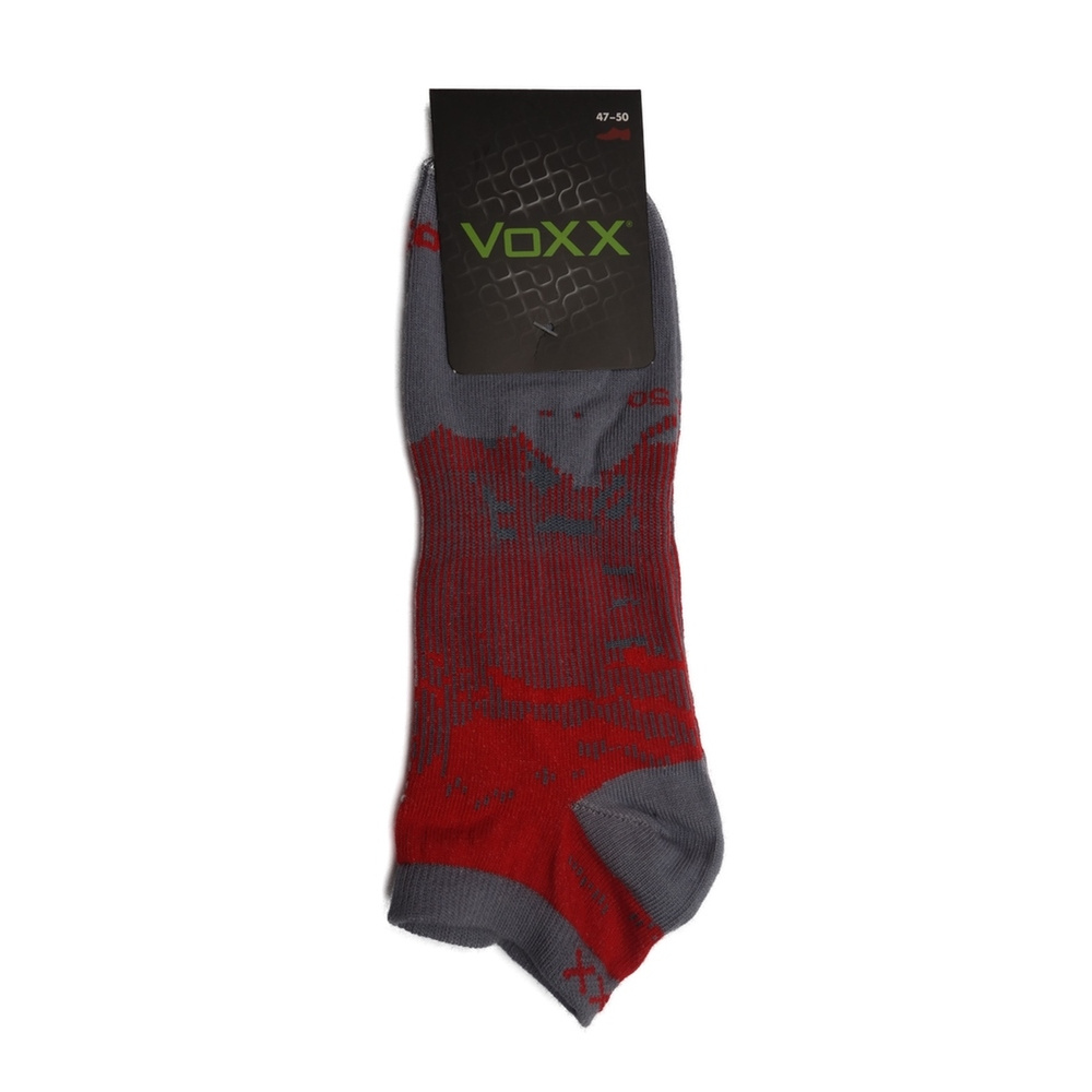 Nízké sportovní ponožky VoXX Rex 18 červená, jsou slabé kotníkové ponožky na celodenní nošení i letní indoorové a outdoorové aktivity. Ponožky jsou červené s šedými detaily. Tyto sportovní ponožky mají vyšší podíl bavlny pro dobrý odvod vlhkosti, prodyšnou zónu na nártu, elastickou zónu proti přetočení ponožky, jemný nestahující lem a řetízkovanou špici. Výška ponožek pod kotník je ideální na léto.