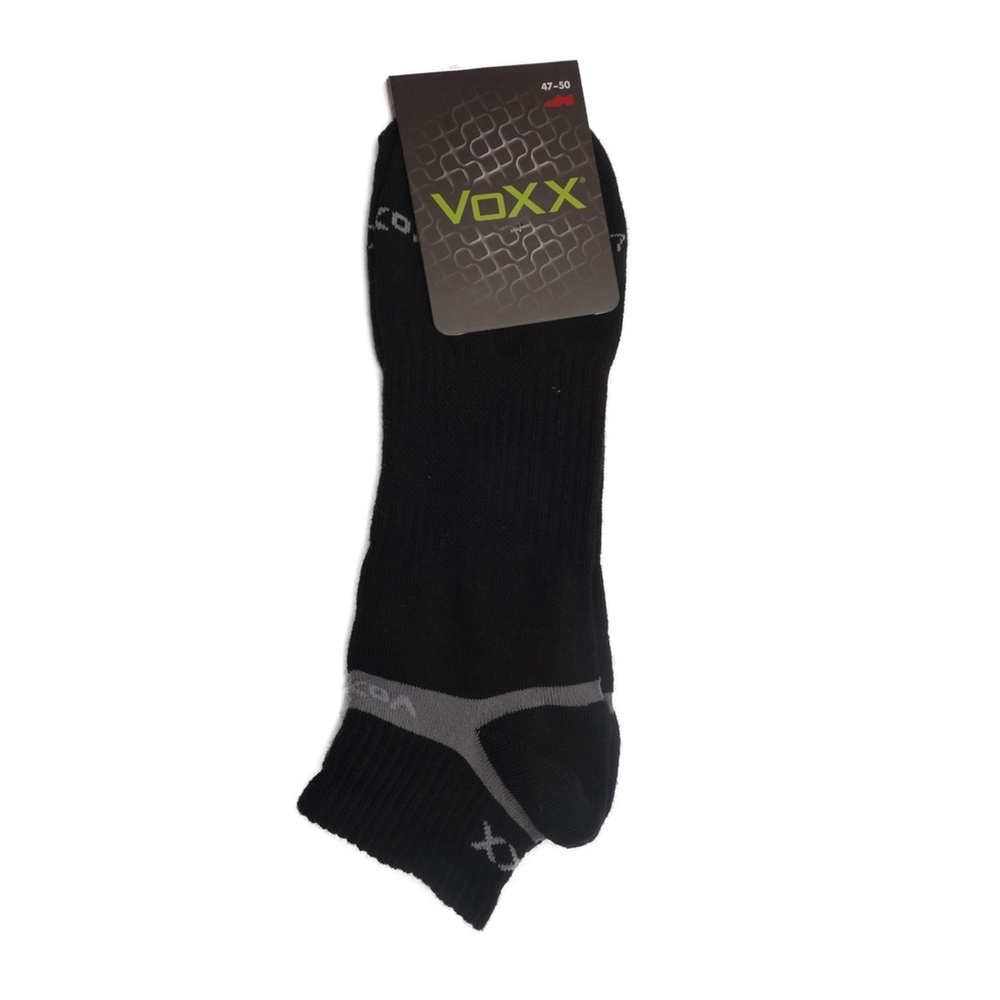 Nízké sportovní ponožky VoXX Rex 14 černá, jsou slabé kotníkové ponožky na celodenní nošení i letní indoorové a outdoorové aktivity. Ponožky jsou černé s šedými detaily a nápisy. Tyto sportovní ponožky mají vyšší podíl bavlny pro dobrý odvod vlhkosti, prodyšnou zónu na nártu, elastickou zónu proti přetočení ponožky a jemný nestahující lem. Výška ponožek pod kotník je ideální na léto.