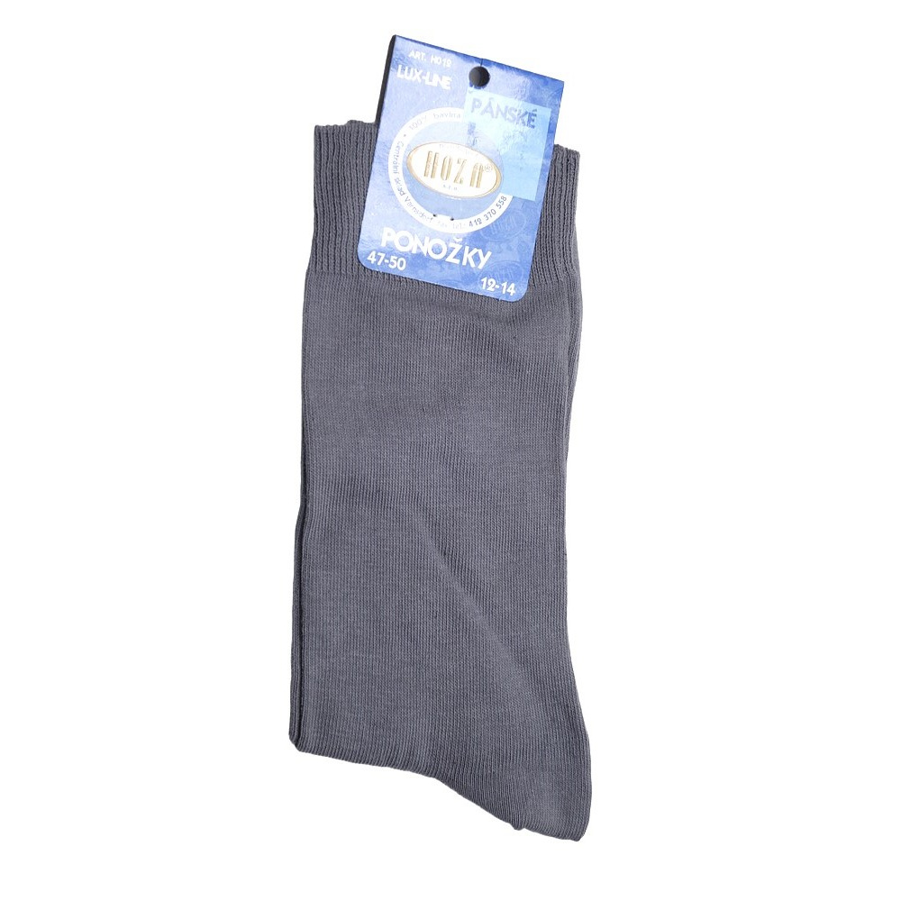 Ponožky Hoza H012 jsou vyrobeny z kvalitní bavlny, která zajišťuje maximální pohodlí a prodyšnost. Tenké, hladké, jednobarevné ponožky výborně sají pot. Neobsahují žádnou příměs, proto jsou díky čistě přírodnímu materiálu vhodné např. pro osoby, které trpí plísněmi, ekzémy, nadměrným pocením nebo nesnesou žádná umělá vlákna. Díky své měkkosti a příjemným lemům se stávají ideální volbou pro každodenní nošení. Barva šedá.