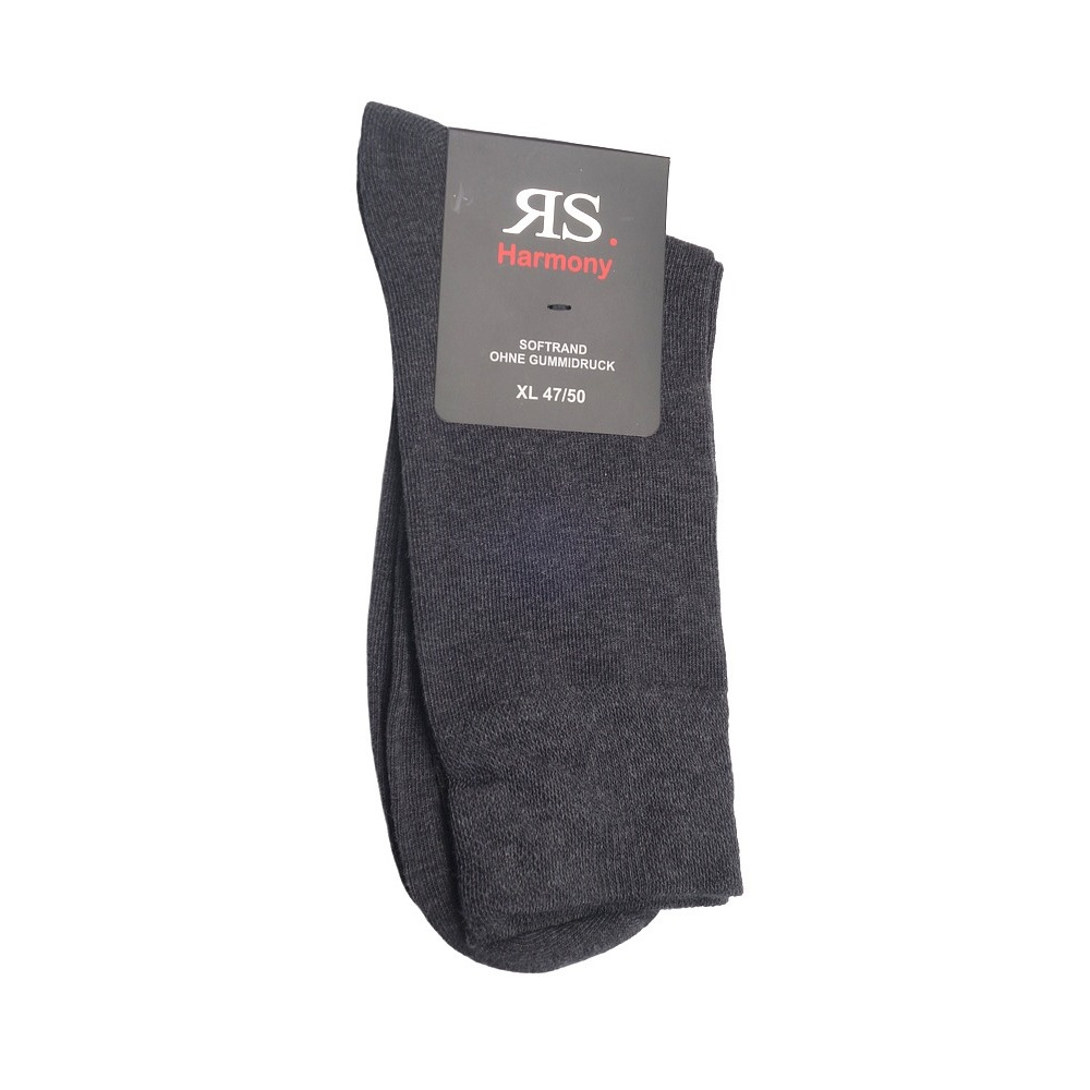 Klasické pánské tmavě šedé oblekové ponožky s jemným svěrem lemu RS Olet 31043. Pohodlí zajišťuje plochý řetízkovaný šev na špici a trvanlivost ponožek pak zesílení zdvojeným pletením v oblasti paty a špice. Tyto hladké ponožky v klasické výšce se příjemně nosí a nesjíždí. Skvěle drží díky své elasticitě a neškrtí díky pohodlnému vaflovému nesvíravému lemu. Ponožky jsou určené k běžnému nošení i pro volný čas.