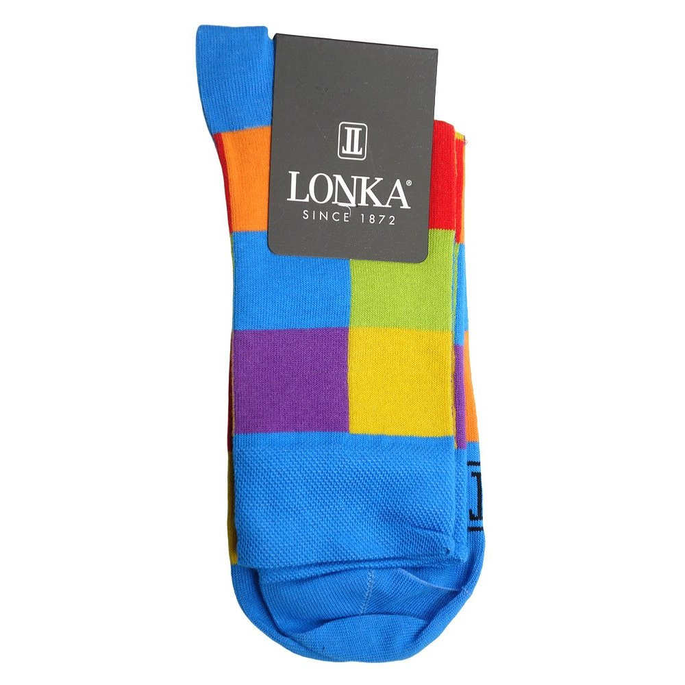 Módní ponožky Lonka Decube modrá, jsou bavlněné ponožky s hravým designem barevných kostek. Bavlna dobře pohlcuje vlhkost a díky elastanu a polypropylenu ponožky déle vydrží, dobře se přizpůsobí noze a drží tvar. Ponožky obsahují také speciální vlákno SilproX s obsahem iontů stříbra, které působí antibakteriálně a značně omezuje tvorbu bakterií a plísní. Bakterie jsou stříbrem přirozeně zničeny a nedochází pak k tvorbě zápachu. Ponožky jsou velmi jemné a hladké díky 200 jehlovému úpletu. Zakončení špice pomocí řetízkování a jemný nestahující lem pak pomáhají chránit nohu před otlaky nebo puchýři. Ponožky mají klasickou výšku a jsou vhodné pro každodenní nošení.