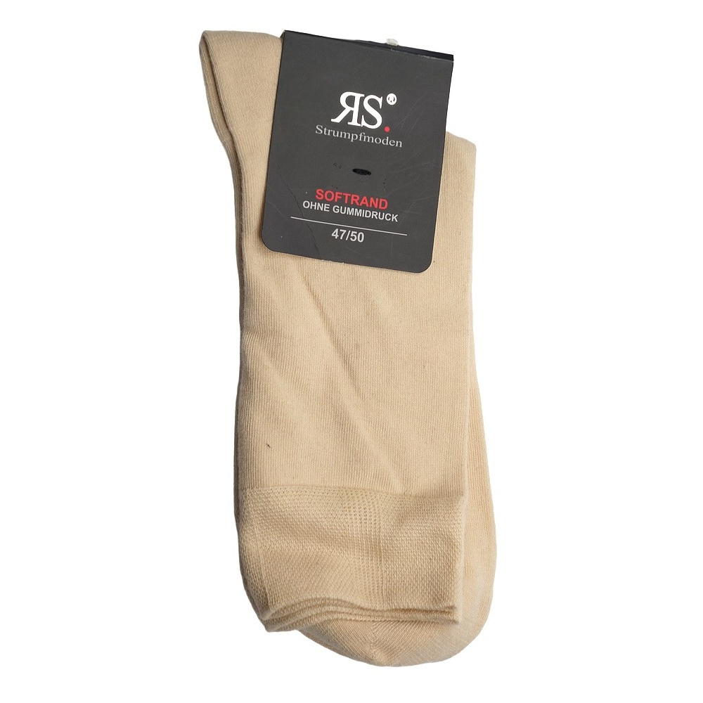 Klasické pánské jednobarevné ponožky s jemným svěrem lemu RS Olet 31044/2 světle béžová. Ponožky jsou příjemné na dotek a díky vysokému podílu bavlny jsou velmi prodyšné. Kombinace polyamidu a elastanu zajišťuje delší trvanlivost ponožek. Ponožky skvěle drží a neškrtí díky vaflovému nesvíravému lemu a plochý řetízkovaný šev na špici pomáhá bránit nepříjemným otlakům. Tyto hladké ponožky v klasické výšce se příjemně nosí a jsou určené k běžnému nošení i pro volný čas.