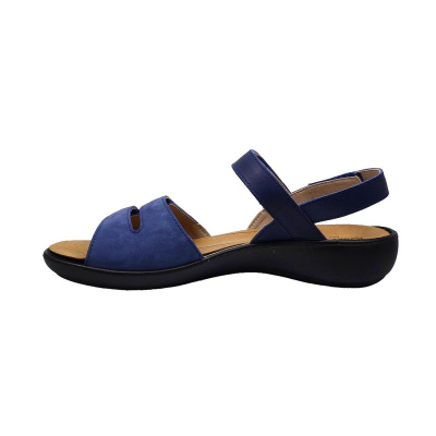 Dámské letní vycházkové sandály značky Gabor. Svršek je z broušené kůže (nubuk), podšívka a stélka textilní (stélka je vyměkčená pro větší pohodlí), podešev syntetická. Barva je černá (schwarz). Šíře je G. Výška klínku pod patou je 20 mm (+ 8 mm podešev). Pásek přes nárt je upevněn na gumičce pro větší komfort, zapínání je na suchý zip. Obuv je vhodná na nošení do města a v upraveném přírodním prostředí (parky, lesní a polní cesty apod.).