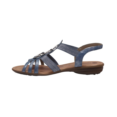 Dámské letní vycházkové sandály značky Remonte. Svršek je ze syntetiky, podšívka syntetická, stélka textilní, podešev syntetická (odlehčená a odpružená - LIGHT SOLE). Barva je černá (schwarz). Šíře je H (Extra Wide). Pásky přes nárt jsou pružné (gumičky) pro snažší obutí a větší komfort. Obuv je vhodná na nošení do města a v upraveném přírodním prostředí (parky, lesní a polní cesty apod.).