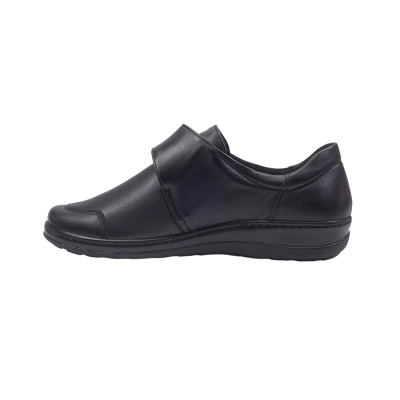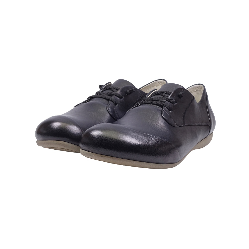 Dámská vycházková obuv značky Josef Seibel. Svršek je z hladké kůže, podšívka a stélka kožená (stélka je vyměkčená pro větší komfort), podešev syntetická. Barva je černá. Obuv je místo šněrovadel vybavena gumičkami pro rychlejší obutí a větší komfort (obuv se nešněruje, ale obouvá se jako mokasíny). Obuv je vhodná na nošení do města a v upraveném přírodním prostředí (parky, lesní a polní cesty apod).