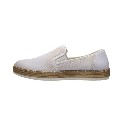 Dámské letní vycházkové polobotky značky Remonte. Svršek je z hladké kůže, podšívka a stélka textilní, podešev syntetická. Stélka je vyjmutelná a vyměkčená (REMONTE SOFT). Barva je tmavě modro-bílá (blau kombi). Svršek obuvi je perforovaný pro lepší klima uvnitř obuvi. Šněrování na nártu je pružné pro snažší obutí (lze vyměnit za klasická šněrovadla - jeden pár je přiložen k obuvi). Obuv je vhodná na nošení do města a v upraveném přírodním prostředí (parky, lesní a polní cesty apod.).