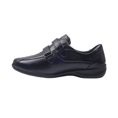 Dámská vycházková obuv značky Josef Seibel. Svršek je z hladké kůže, podšívka kombinací kůže a textilu, stélka kožená, podešev syntetická. Stélka je vyjmutelná, vyměkčená a anatomicky tvarovaná. Barva je černá (schwarz). Obuv je flexiblová (svršek a podešev jsou spojeny šitím). Obuv je vhodná na nošení do města a v upraveném přírodním prostředí (parky, lesní a polní cesty apod).