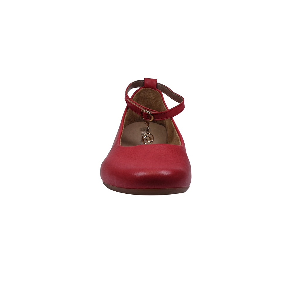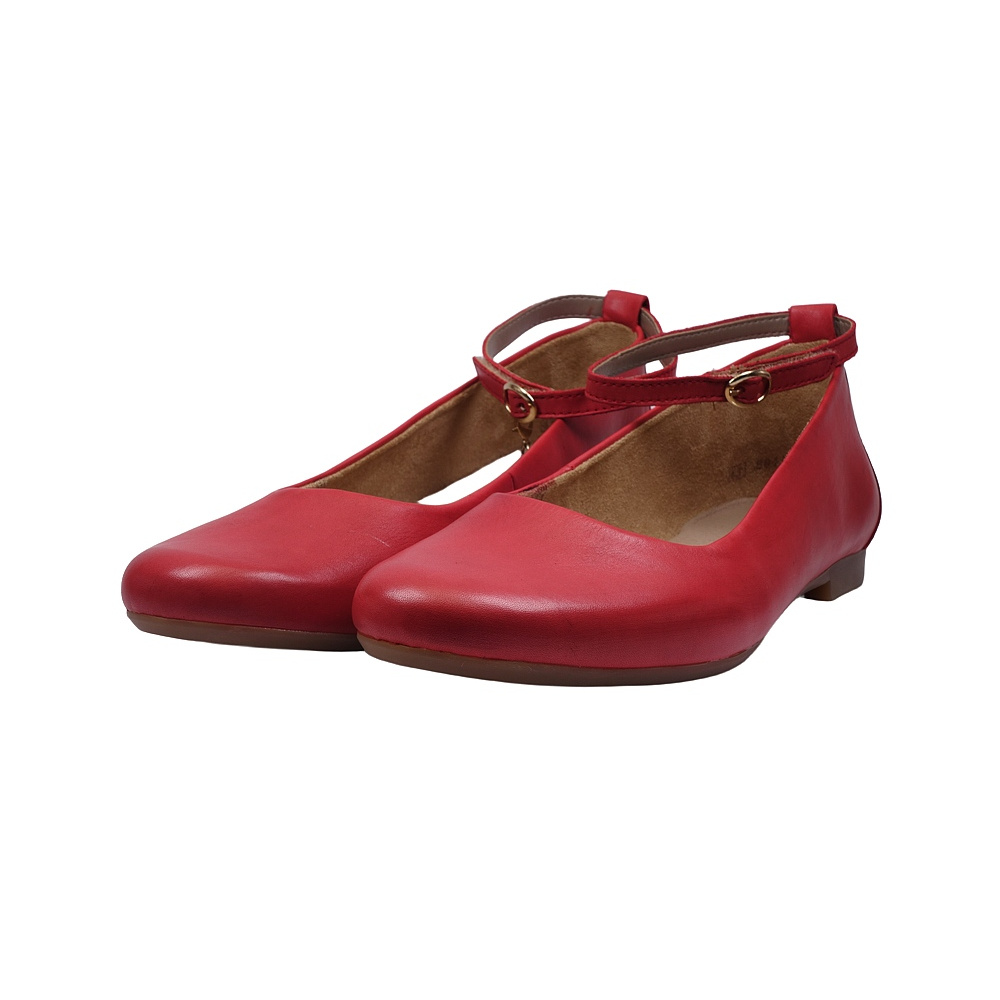 Dámská vycházková obuv značky Remonte. Svršek je z hladké kůže, podšívka textilní, stélka kožená, podešev syntetická (hladká s jemným desénem, non-marking). Stélka je vyjmutelná a vyměkčená. Barva je červená (rot). Pásek přes kotník má zapínání na suchý zip (spona je pouze na ozdobu). Obuv je vhodná na nošení do města a v upraveném přírodním prostředí (parky, lesní a polní cesty apod.).