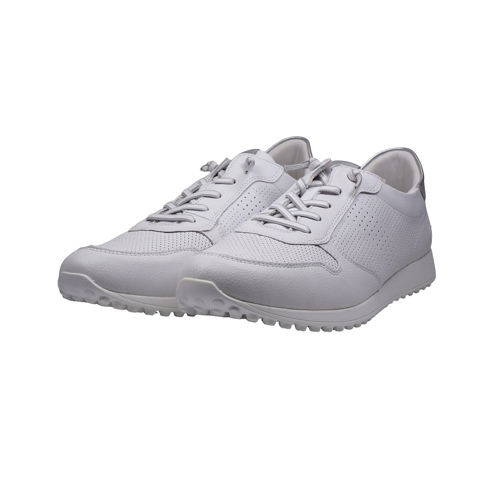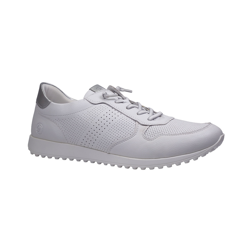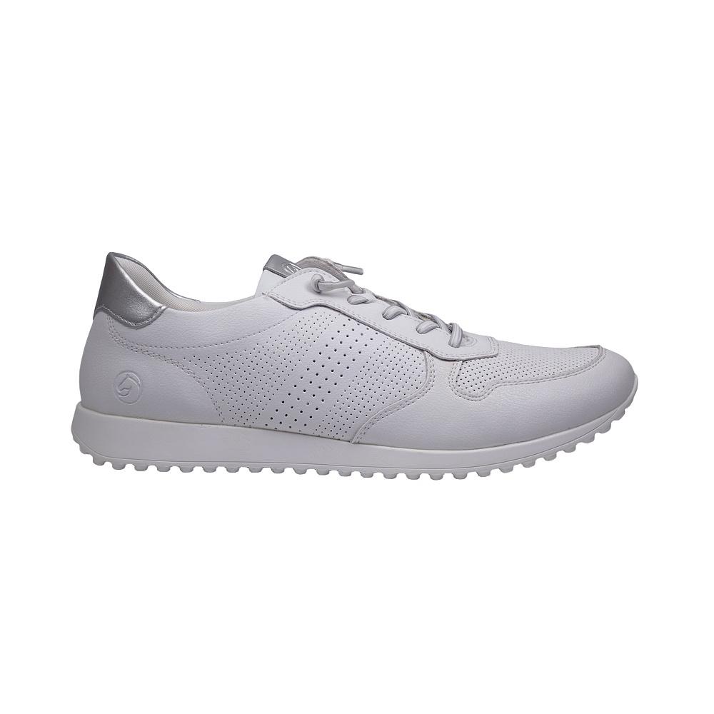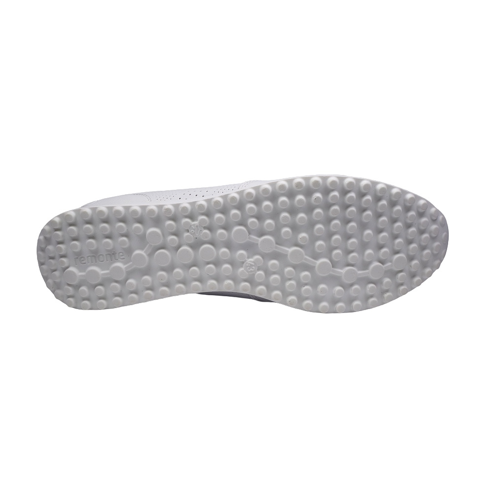Dámské vycházkové polobotky značky Remonte. Svršek je z povrstvené kůže, podšívka a stélka textilní, podešev syntetická. Stélka je vyjmutelná a vyměkčená (REMONTE SOFT). Barva je bílo-stříbrná (weiss kombi). Svršek obuvi je perforovaný pro lepší klima v obuvi. Obuv je vhodná na nošení do města a v upraveném přírodním prostředí (parky, lesní a polní cesty apod.).