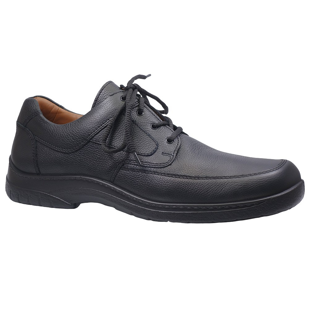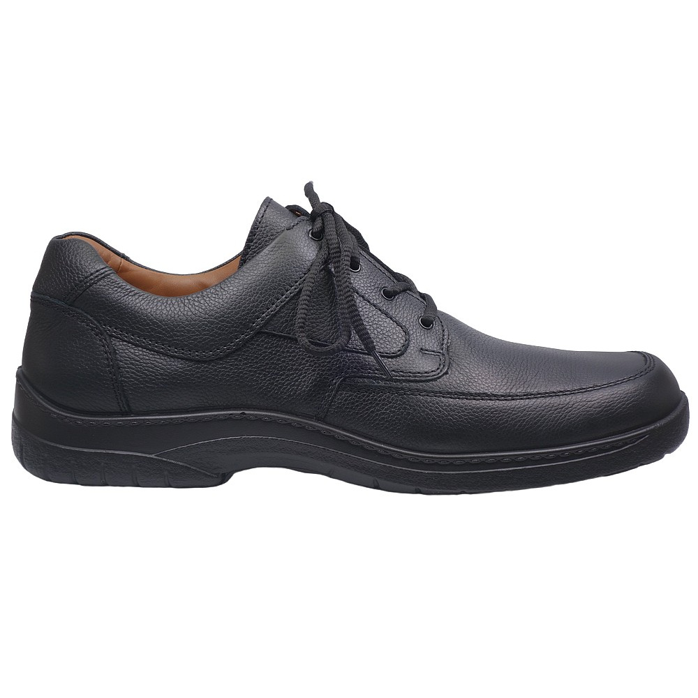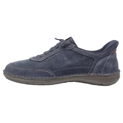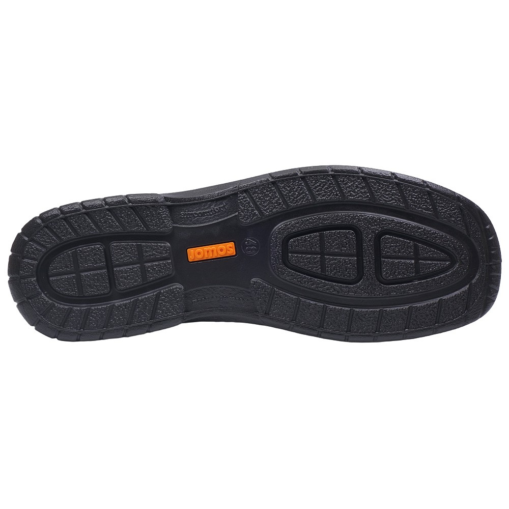 Pánská vycházková obuv - polobotky značky Jomos. Svršek je z hladké kůže, podšívka kombinací kůže a textilu, stélka textilní, podešev syntetická (AIRCOMFORT). Stélka je vyjmutelná, vyměkčená a anatomicky tvarovaná. Barva je černá (schwarz). Šíře je H. Obuv je vhodná na nošení do města a v upraveném přírodním prostředí (parky, lesní a polní cesty apod.).