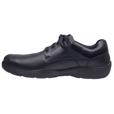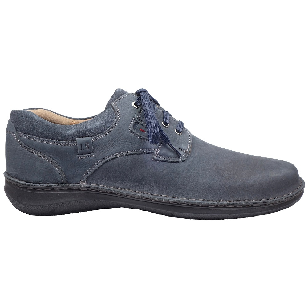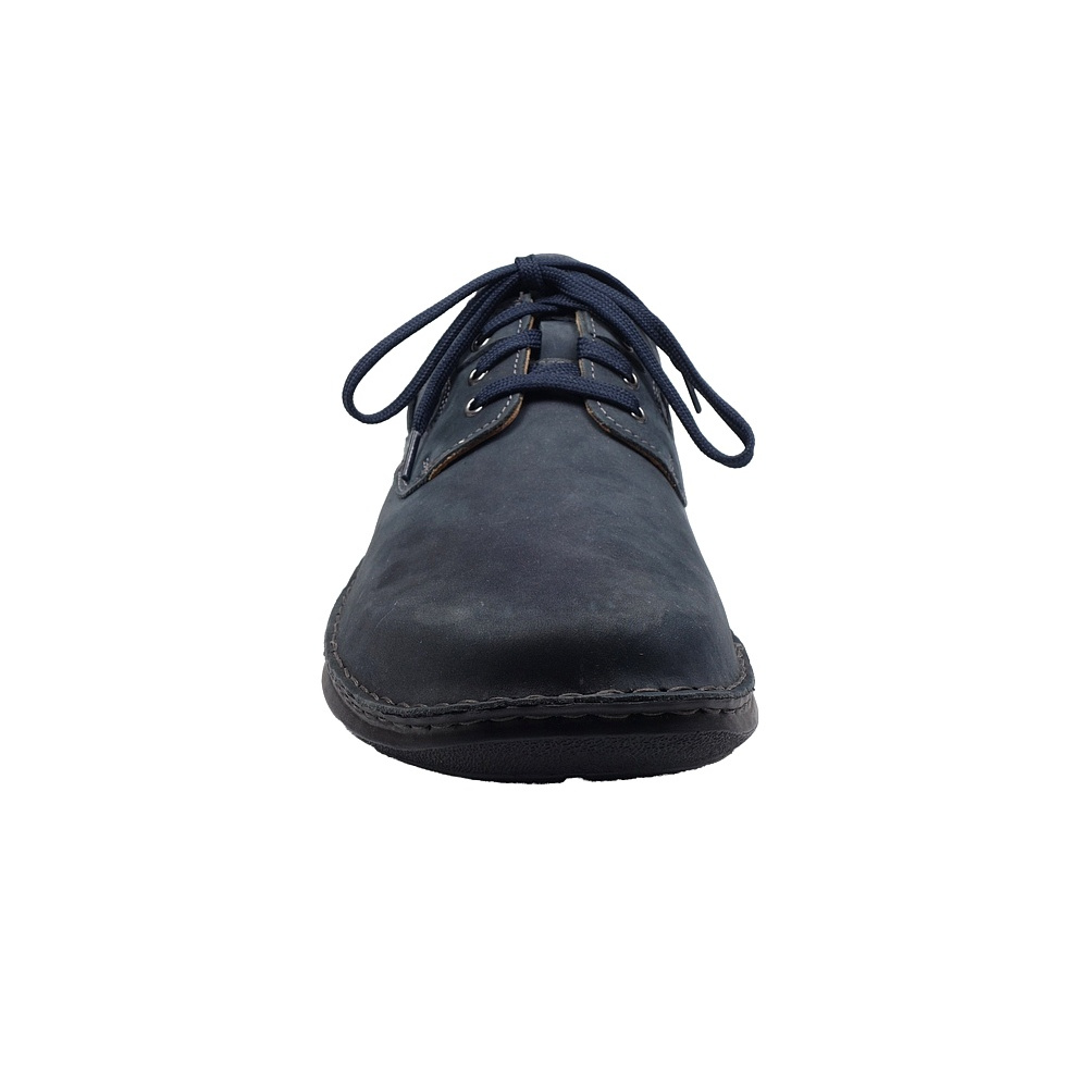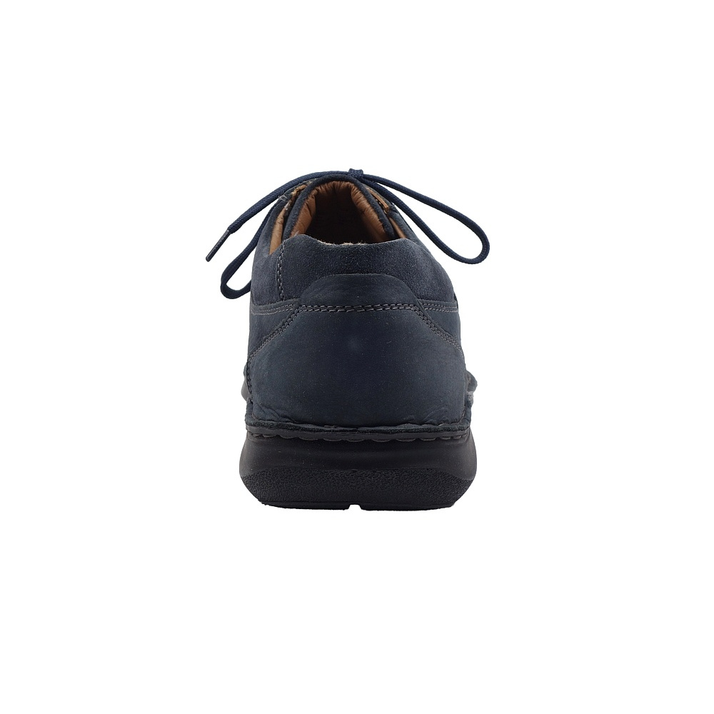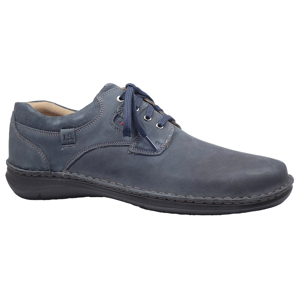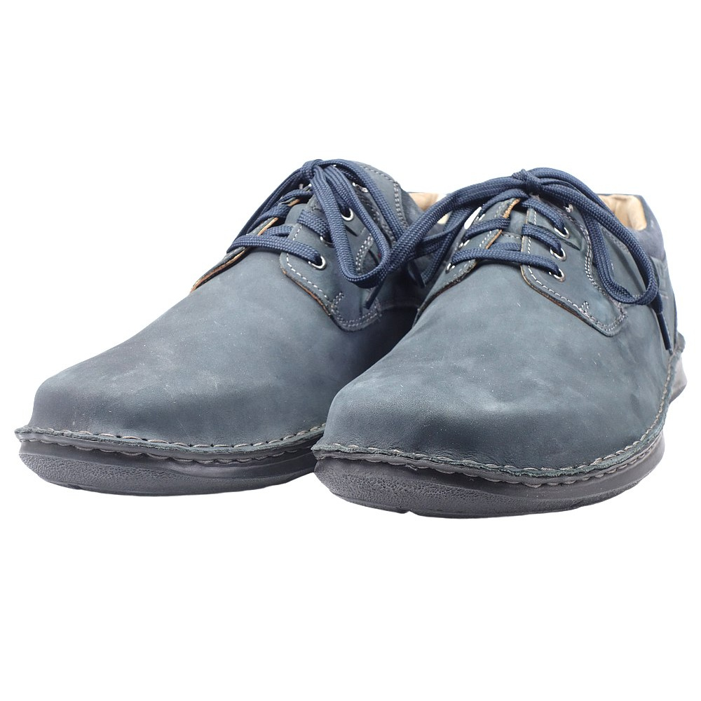 Pánská vycházková obuv značky Josef Seibel. Svršek je z broušené kůže (nubuk+velur), podšívka kombinací kůže a textilu, stélka kožená, podešev syntetická. Stélka je vyjmutelná, odpružená a anatomicky tvarovaná. Barva je šedomodrá (indigo). Šíře je K (Extra Wide). Obuv je flexiblová (svršek a podešev jsou spojeny šitím). Obuv je vhodná na nošení do města a v upraveném přírodním prostředí (parky, lesní a polní cesty apod.).