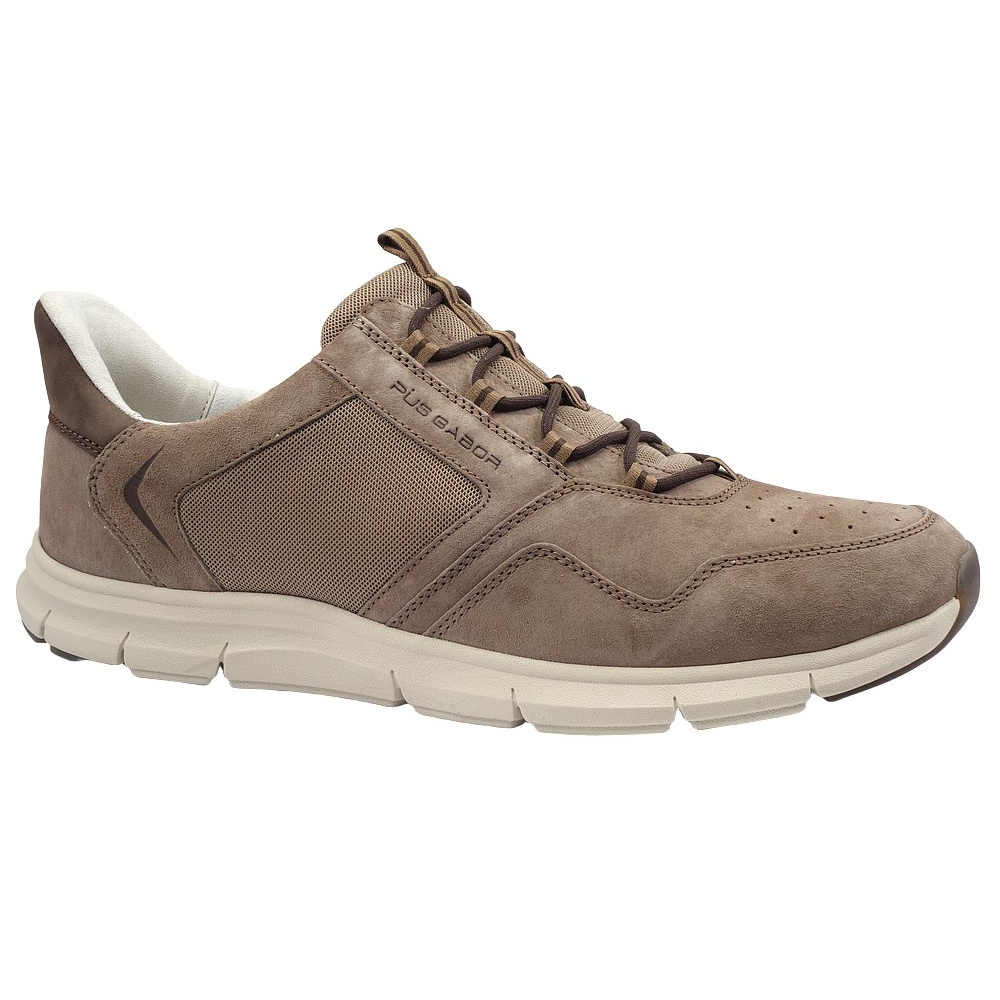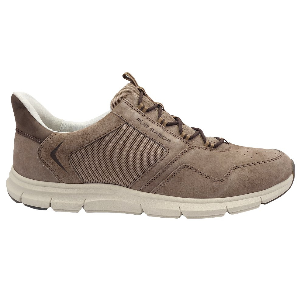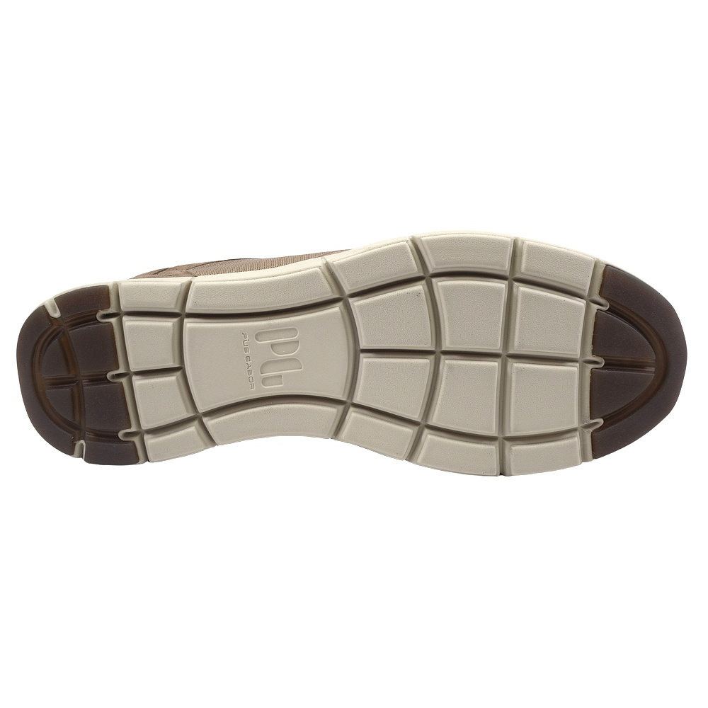 Pánské vycházkové polobotky značky Pius Gabor. Svršek je kombinací broušené kůže (velur+nubuk) a textilu (Mesh), podšívka a stélka textilní, podešev syntetická. Stélka je vyjmutelná a odpružená. Barva je hnědá (light brown/silk/mocca). Obuv má na nártu místo klasických šněrovadel pružné gumičky pro snažší a rychlejší obutí (obuv se obouvá stejně jako mokasíny). Obuv je vhodná na nošení do města a v upraveném přírodním prostředí (parky, lesní a polní cesty apod.).