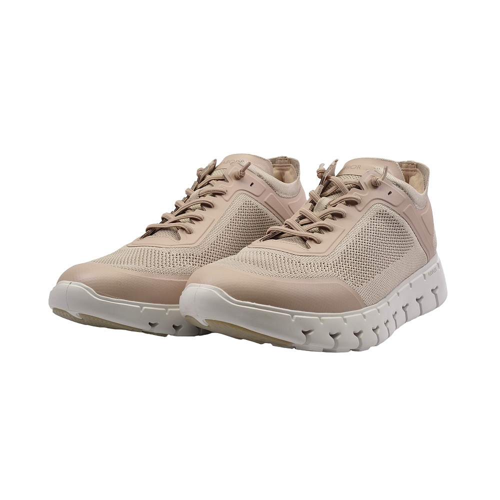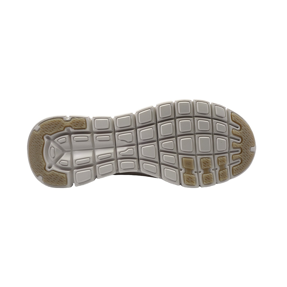 Dámská vycházková obuv značky Gabor. Svršek je kombinací textilu a syntetiky, podšívka a stélka textilní, podešev syntetická (extra ohebná - FLEXFLEX. Stélka je vyjmutelná, vyměkčená a anatomicky tvarovaná. Barva je béžová (silk). Obuv je místo šněrovadel vybavena gumičkami pro rychlejší obutí a větší komfort (obuv se nešněruje, ale obouvá se jako mokasíny). Podšívka obuvi je v patní části vypolstrovaná pro větší pohodlí. Obuv je vhodná na nošení do města a v upraveném přírodním prostředí (parky, lesní a polní cesty apod.).