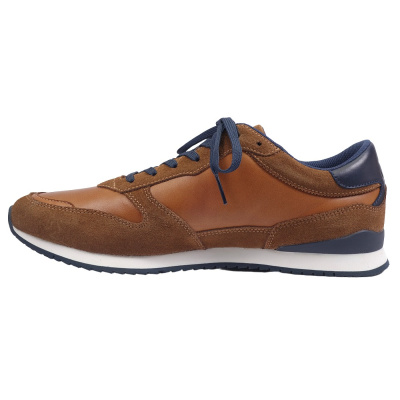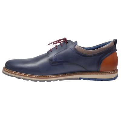Pánská vycházková obuv značky Jomos. Svršek, podšívka a stélka jsou textilní, podešev syntetická (AIRCOMFORT). Stélka je vyjmutelná, vyměkčená a anatomicky tvarovaná. Barva je tmavě modrá (nachtblau). Šíře je H. Obuv je vhodná na nošení do města a v upraveném přírodním prostředí (parky, lesní a polní cesty apod.).