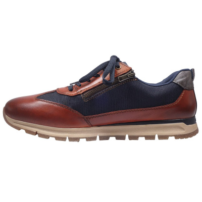 Pánské vycházkové mokasíny značky Josef Seibel. Svršek je kombinací broušené kůže (nubuk+velur) a hladké kůže, podšívka kombinací kůže a textilu, stélka kožená, podešev syntetická. Stélka je vyjmutelná, odpružená a anatomicky tvarovaná. Barva je světle hnědá/šedomodrá (sand-kombi). Šíře je K (Extra Wide). Obuv je flexiblová (svršek a podešev jsou spojeny šitím). Obuv je na nártu vybavena gumičkami pro snažší obutí a větší komfort. Obuv je vhodná na nošení do města a v upraveném přírodním prostředí (parky, lesní a polní cesty apod.).
