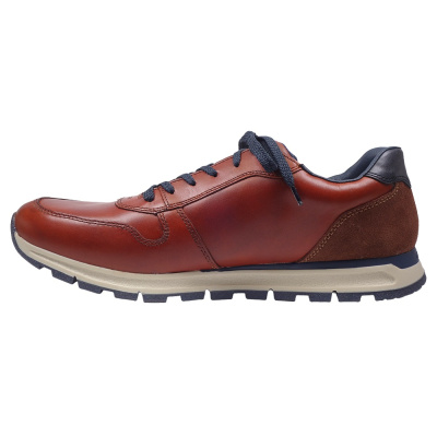 Pánská vycházková obuv značky Sioux. Svršek je z hladké kůže, podšívka kombinací kůže a textilu, stélka kožená, podešev syntetická. Stélka je vyjmutelná a vyměkčená (Super Soft). Barva je přírodní (cognac). Šíře je H. Patní část podešve je vybavena tlumícím polštářkem (SUPER SOFT) pro větší komfort. Obuv je vhodná na nošení do města a v upraveném přírodním prostředí (parky, lesní a polní cesty apod.).
